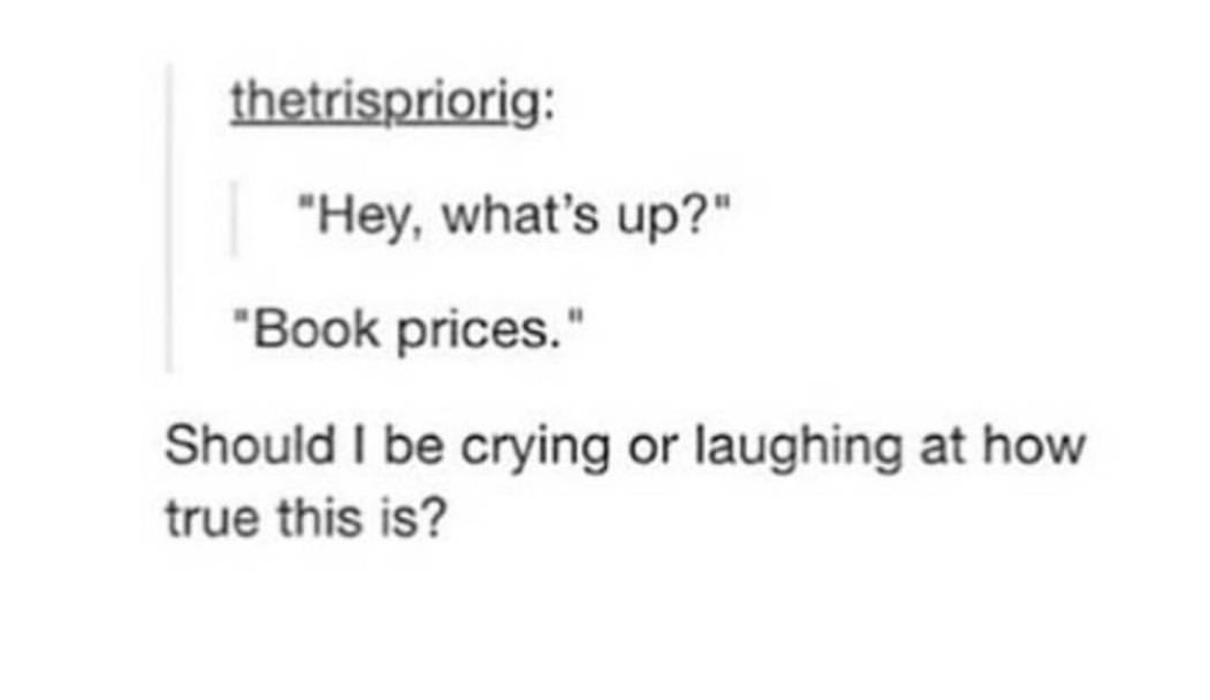 Sometimes I just randomly collect Tumblr screenshots because the people are being real as hell hahah and I noticed ALL MY PICTURES ARE BOOK RELATED. I decided why don’t I share with all my bookworm friends? Which is all of you!!