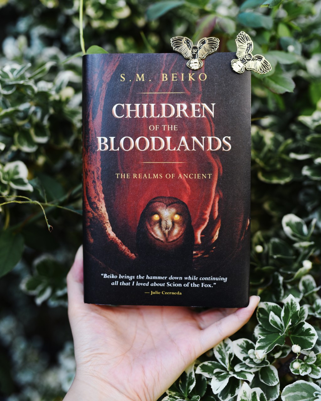 The giveaway is for a copy of Children of the Bloodlands and two custom owl pins, and two winners will be selected (so each winner gets a book and 2 pins).